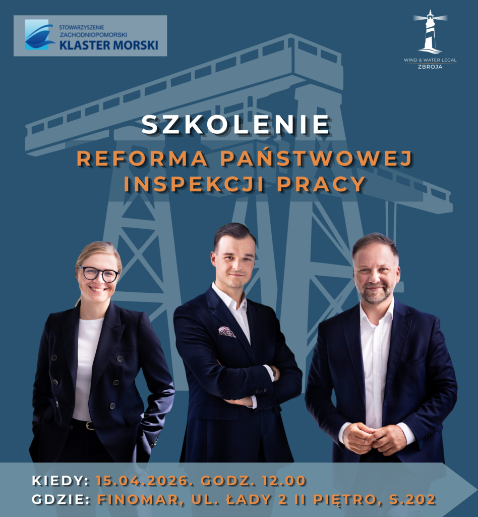 Spotkanie poprowadzi zespół kancelarii Wind & Water Legal Zbroja Adwokaci i Radcowie Prawni sp.k., w składzie: Patryk Zbroja, Stanisław Kaup, Małgorzata Wojtysiak. Prawnicy omówią najważniejsze zmiany wynikające z reformy PIP i ich praktyczne znaczenie dla przedsiębiorców.